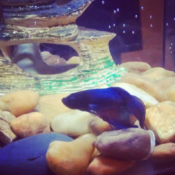 Goldie is funny. He’s one of the laziest fish I’ve ever seen. He lays on the bottom of the tank or on top of his rock mountain way more than he swims. I usually mostly see him swimming when I feed him.  I don’t know why I keep upgrading his tank  – I guess to give him more rocks to lay on.