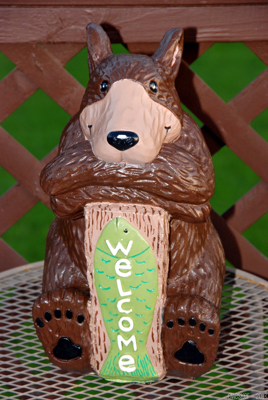 This is a bear statue I picked up at one of our local Goodwill stores for $4. When I purchased it, it was in all shades of gray and pretty chipped up, at that. I took it home, repainted it, sealed it and now this guy lives on my back deck. I’m always on the look out for fix ‘r up statues like this to put around the porches and in the yard. 🙂