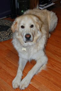 As mentioned before, when we first took in Buddy, our Great Pyrenees/Golden Retriever, from the horrid conditions he was in, there was also a female Pyr with a litter of puppies…Buddy’s puppies. At the time they were just tiny (well as tiny as a Pyr can be) little nursing furballs, maybe a month old at the time. This puts them at almost 5 months old now. I’ve been able to keep up with some of the puppies since this site URL is sometimes given to the new owners so they can see what “dad” looks like.